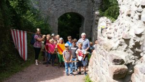 22 Kinder erlebten eine Burgführung mit dem Vorstand des Historischen Vereins Biberach. Josef Ringwald erzählte dabei die spannende Geschichte der ehemaligen Besitzer der Hohengeroldseck.