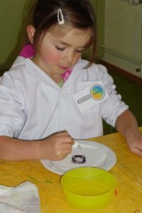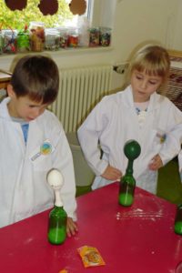 Bald begann schon das erste Experiment, denn die Einladung zur Forscherwoche war in einem Luftballon versteckt. Für die Kinder stellte sich sogleich die Frage: »Wie komme ich an diese Einladung heran?« Die folgende Forscherwoche war gefüllt mit vielen interessanten Experimenten.