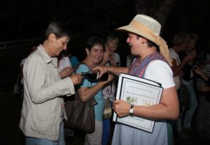 So erging es ihr wohl auch. Ebenso spontan wie die erste Wanderung mit örtlichen Sagen im Jahre 2006 entstanden ist, folgten fast zwangsläufig weitere Themenabende zu Hexen und Geistern, Wiedergängern und Wunderheilern – Michaela Neuberger blieb hier ihrem Metier verwurzelt. Dazu beigetragen hatte vor allem der Kontakt zu Hedwig Buß, deren schier unerschöpflicher Schatz an Ausarbeitungen zu diesen Themen einen fruchtbaren Boden bildete, in dem Michaelas Wurzeln sich bestens verankerten – wie Bäume eben, denen sie sich momentan verschrieben hat.