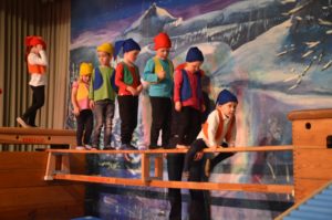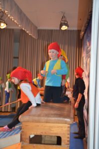 Der Nachwuchs beim TV Zell zählt 310 Turnschüler zwischen null und 18 Jahren. In 14 verschiedenen Sportstunden werden diese von 28 Übungsleitern trainiert. Klein beginnen die Jüngsten: Spielerisch tasten sie sich an Sportgeräte heran und trainieren mutiges und sicheres Bewegen in Gerätelandschaften. Übungsleiterin Claudia Sapparth und das TV-Geräte-Kommando stellten am Sonntag Hängebrücke, Rutschbahn und schiefe Kletterebene auf der Bühne zusammen. Die Kleinkinder zeigten, als Zwerge verkleidet, wie gut ihnen diese Übung schon gelingt und ihre Freude dabei war einfach ansteckend.