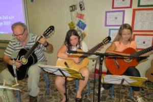 Erstmals gibt es eine Musikgruppe am SBBZ: Sozialarbeiter Albert Heizmann hat einigen Kindern das Gitarrenspiel beigebracht. Mit Unterstützung von Matthias Demmel und Klaus Zillhardt musizierten die Kinder Leonhard Grützner, Malte Richter, Jennifer Zilch und Franziska Gehring.