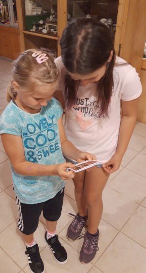 »Schau mal Sveja, hier sind die Hasen!« ruft Laura ganz aufgeregt. Jetzt müssen sie noch die Fragen zum gefundenen Gegenstand beantworten sonst können sie das Zahlenschloss an der ersten Mappe in welcher sich das zweite Bild befindet nicht öffnen. Beide Mädchen sind sichtlich stolz als sich das Schloss öffnen lässt. Mit dem zweiten Bild in den Händen geht die Suche weiter.
