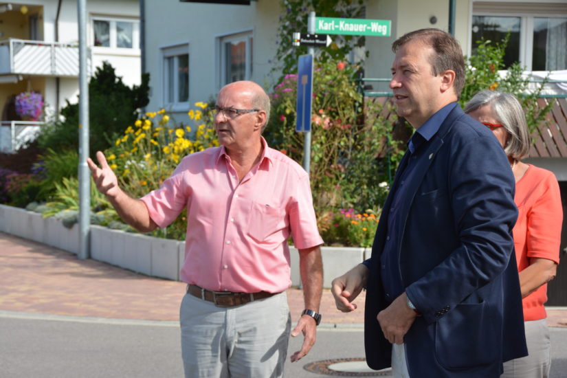 Das Konzept für das Nachbarschaftshaus »Am alten Sportplatz« findet auch die Zustimmung der Behörden. Der Kommunalverband für Jugend und Soziales Baden-Württemberg »KVJS« fördert das Pilotprojekt mit einem Zuschuss in Höhe von 100.000 Euro. Die Besonderheit ist, dass sich hier künftig bürgerschaftliches Engagement und professionelle Dienstleistung ergänzen. Landtagsabgeordneter Thomas Marwein informierte sich vor Ort, wie das Geld sinnvoll und zukunftsweisend angelegt wird.