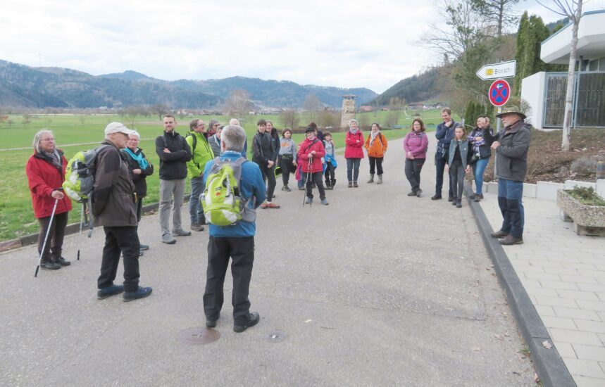 Nach kurzer Vorstellung der Wanderstrecke machten sich die insgesamt 25 interessierten Wanderer, unter ihnen auch die Familiengruppe des Schwarzwaldvereins Biberach mit vier Kindern, auf die ca. 7,5 km lange Wegstrecke. Unterwegs wurden dann die Standorte und Namen der Hinweisschilder der neuen Wegbeschilderung festgelegt.