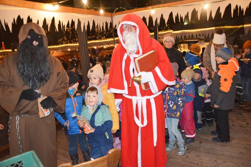 Am vergangenen Freitag besuchten der Nikolaus und sein Knecht Ruprecht die Kinder beim Weihnachtsmarkt. Und sie hatten für alle Kinder gut gefüllte Nikolaustüten mit Lebkuchen und anderen Leckereien mitgebracht.