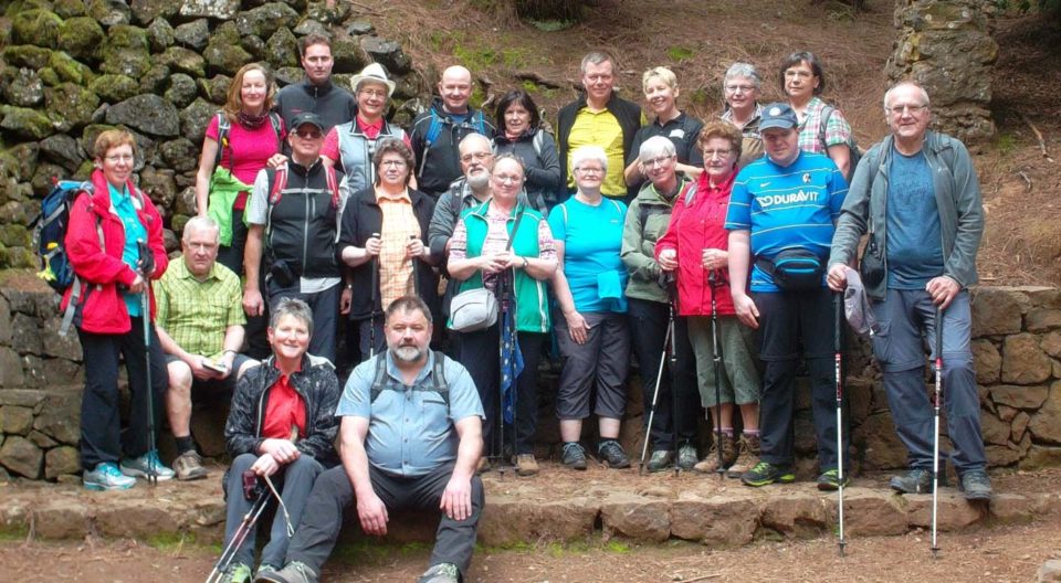 Am Sonntag nach dem Frühstück fuhren alle Teilnehmer bei strahlendem Sonnenschein mit den angemieteten Pkws über abenteuerliche Straßen zum Wanderparkplatz La Caldera im Orotavatal. Geplant war die Anfahrt über die TF 21, gefahren wurde nach Navi über die alten Straßen mit teilweise bis zu 40 Prozent Steigung. Vom Parkplatz La Caldera oberhalb von Aguamansa wanderte die Gruppe zunächst steil bergauf zum Rastplatz und von dort auf dem Forstweg mit der Ausschilderung »Pista de los Organos« durch einen typischen »Pinar«, den kanarischen Pinienwald. Der für diese Region typische Nebel hinderte die Wanderer leider daran, die Aussicht zu genießen. Somit konnten sie auch die »Orgelpfeifen«, die Feldsäulengruppe, die die Erosion geformt hat, nicht sehen. Nach etwa einer Stunde wurde an der Casa de Agua am Rande einer Schlucht die Mittagsrast eingelegt. Gestärkt ging es weiter bis zum Rastplatz El Tope. Von hier ging es in Serpentinen hinunter bis zu einem asphaltierten Sträßchen, das durch Wiesen, Felder und Bauerngärten