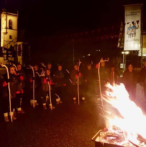 Am Fasentdienstag gegen 22 Uhr zogen die Narrenräte, Glashansel, zwei Musiker und die Versammlungsteilnehmer der »Närrischen Bürgerversammlung« zum Narrenfeuer beim Narrenbaum vor der Hansjakob-Halle. Zunftmeister Stefan Haas blickte auf die diesjährige Fasent zurück: »Sie ist eine lange, schöne und stimmungsvolle gewesen, die noch lange in Erinnerung bleiben wird!« Lassen wir sie in umgekehrter Reihenfolge Revue passieren: