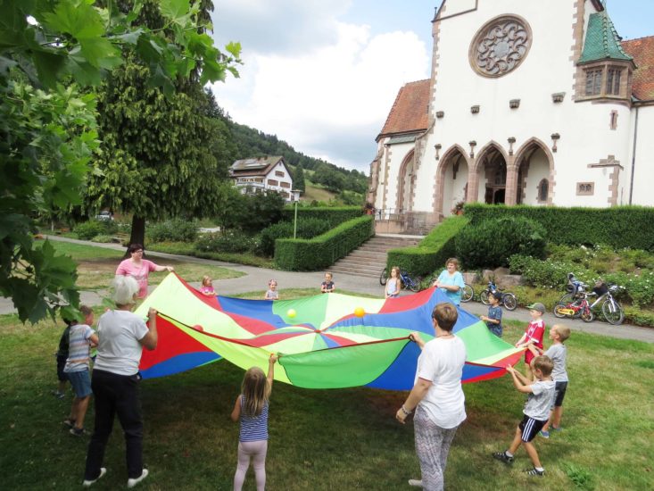 Das KIWOGO-Team veranstaltete dieses Jahr wieder im Rahmen des Nordracher Sommerferienprogramms einen kunterbunten Spielenachmittag für Kinder im Alter zwischen drei und sechs Jahren. Es wurden viele Bewegungsspiele wie zum Beispiel »Der Fuchs geht um« und »Feuer, Wasser, Sturm« gespielt, aber auch das beliebte Schwungtuch kam wieder zum Einsatz. Zudem wurden Berufe und Tiere pantomimisch dargestellt. Es hat allen wieder sehr viel Spaß gemacht.