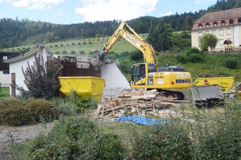 Der Nordracher Gemeinderat hatte in seiner Sitzung am 6. Juli 2020 die Abbrucharbeiten an die günstigste Bieterin, die Firma Kaiser aus Hofstetten, zum Angebotspreis von 24.356 € vergeben. Jetzt, zwei Monate später, begann diese Firma am vergangenen Montag mit den Abbrucharbeiten. Zunächst wurde der Pavillon abgebrochen. Auch der Belag der geteerten Wege und die Reste der maroden Minigolfanlage wurden entfernt.
