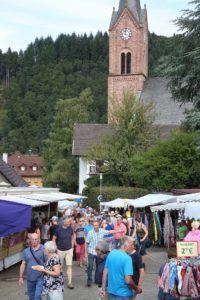 Schon in den frühen Morgenstunden bauten die Marktbeschicker auf den ihnen zugewiesenen Plätzen ihre Stände auf. Wenn auch im Vergleich zu früheren Jahren die eine oder andere Lücke sich aufgetan hat, so war das Angebot der über 80 Händler immer noch vielfältig. Vom Ledergürtel über T-Shirts und Socken, Tischdecken, Bürsten und Messbecher, Spielwaren und Schmuck bis zum Gemüsehobel und anspruchsvollen Küchenmesser reichte die bunte Palette der ausgelegten Waren. Selbst im Zeitalter des Online-Handels scheint der Treff auf dem Markt für viele unentbehrlich zu sein: das Vorführen der Ware, das beratende Gespräch und eben einfach ein Schwätzchen zur Abwechslung.