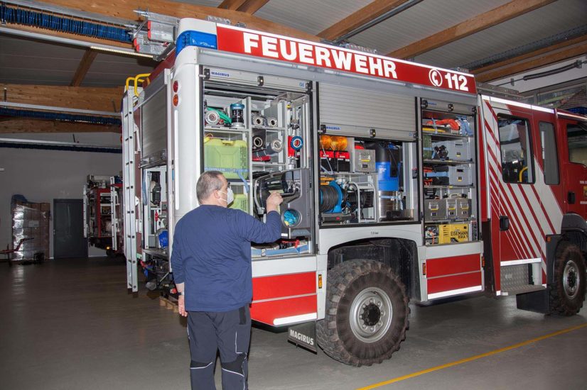 In der großen Fahrzeughalle sind gerade neue Schläuche eingetroffen, die es noch zu verstauen gilt. »Mit wechselnden Kräften warten wir Fahrzeuge und technische Geräte, um notfalls ausrücken zu können«, beschreibt der Kommandant kurz und bündig die weitgehend zur Untätigkeit verurteilte Feuerwehr. Als ergänzende Tätigkeiten nannte er auch die zusätzliche Aufrüstung der Fahrzeuge gemäß den Vorschriften für einen Einsatz unter den aktuellen Bedingungen.