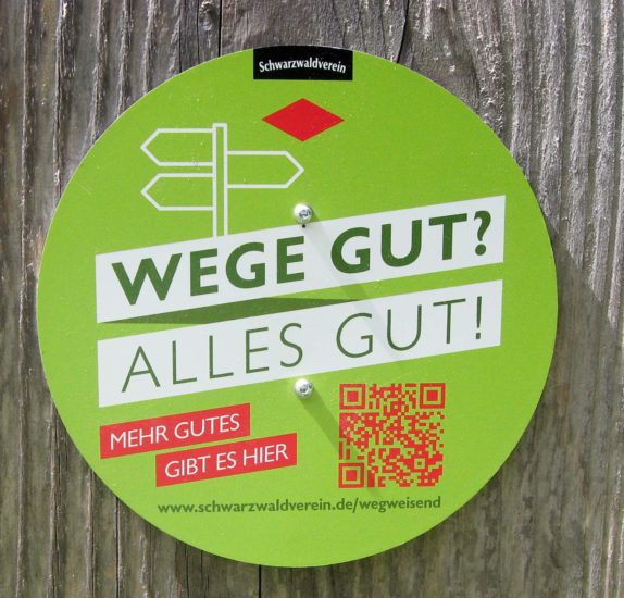 Wer auf den Wanderwegen des Schwarzwaldvereins unterwegs ist, kann derzeit an verschiedenen markanten Stellen dem Schild »Wege gut? Alles gut!« begegnen.