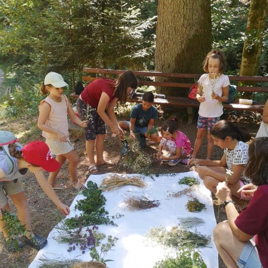Im Rahmen des Kindersommers haben Mathilde und Kathrin vom DJK-Jugendteam wieder mit den Kindern an der Lourdesgrotte in Zuwald Kräuterbüschel gebunden.