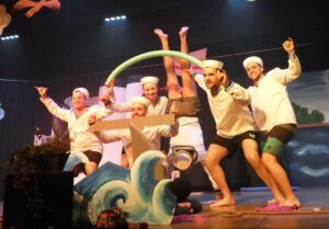 Kunterbuntes Geschehen auf der „MS-Dörfle“, das kuriose Kreuzfahrtschiff nahm das Publikum „an Land“ von Anfang an mit.