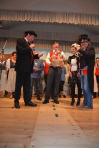 Über »Neues aus dem Tal« berichtete dann der Dörfle-Gemeinderat. Klar, dass dabei auch der Hombe an die Reihe kam, der gerade »generalüberholt« wird und nur noch über eine »zivile Luftbrücke« zu erreichen ist. Als neue Spielwiese für die Zeller Wirte hatten die schlauen Räte die Schulmensa erkoren. Dort stehen künftig Tonis 2-Gänge-Menü, Erichs süße Ruebe und Edgars Zauberei auf der Speisekarte. Derweil dreht sich das Personal-Karrussell: in der Stadtkapelle, beim Bauhof und auch beim Narrenrat, wo ein »frischer Fischer, alter Fischer« an die Angel gegangen ist. Heiß her ging es bei Gutmanns Gartenparty, wo nicht nur die Würstchen gegrillt wurden. Rat Bernhard wurde deshalb von seinen Kollegen mit Feuerwehrhelm und Löschzwergen ausgestattet: »Holdrio! Holdrio!«