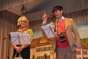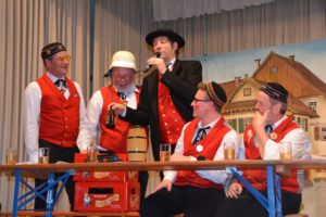 Die »sibirische Kälte« machte den drei Dorf-Deppen zu schaffen, da half auch am Frieder seine Wollunterhose nicht. Allerdings, die Gosch der drei Dörfle-Originale war nicht zugefroren. In bestem »Zeller Ditsch« »verluschterten« sie die neue Narrenrats-Attraktion am Bahnhof und die Deppen hatten auch genau aufgepasst, was der Zeller Bürgermeister allwöchentlich im Amtsblatt bekannt gibt. »Mull schwätz oder Buggel schaff«, machten sich die Deppen ihren Reim darauf. »Bohnomtlich« sei nun auch, dass die Hombe »rumdrillt« wird. Dort gibt es einen schönen Kahlschlag, wie bei einem »Rieslos«. Herrlich, diese drei tratschenden und verschmitzten Dorfdeppen – die mit dazu beitragen, dass der Dörfle-Abend so einmalig ist.