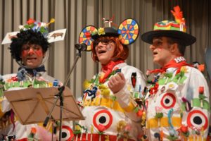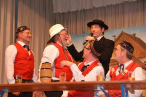 Beim Dörfle-Abend 2017 gab es keine Nieten: Die bauernschlauen Räte, die Koslowskis aus Wanne Eickel, die hübschen Dörfle-Frauen und die tratschenden Deppen deckten alle närrischen Karten auf. Stimmgewaltig zogen die Schießbudenfiguren auf die Dörfle-Spielwiese. Da war jeder Schuss ein Treffer. Aber dennoch musste sich das Narrenvolk in der ehrwürdigen Jahnturnhalle gehörig in Acht nehmen, denn die Dörfle-Schießfiguren schossen auch zurück.