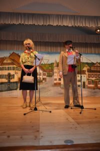 Im Spiel der Dörfle-Frauen waren gleich fünf Asse. Und die stachen. »Ja, wir schaffen das«, vermachten sie dem Bürgermeister vom Städtle, dem »kleinen Donald Trump von Zell« und fragen sich aber: »Wer soll das bezahlen?« »Er verbündet sich mit dem Osten, was wird das wohl kosten?« Peinlich war für die Ass-Damen das Werben um Feriengäste im Internet und im Zeller Wasser vermuteten sie gar zu viel Hormone, weil »die Karten gerade neu gemischt werden«. Fachkräftemangel herrscht auch in der Pfarrei, wo das Sternsinger-Personal jetzt schon über die Zeitung gesucht wird.