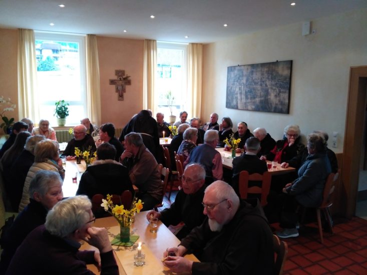 Bruder Primin hielt die Festpredigt zu diesem Feiertag. Im Anschluss an den sehr gut besuchten Festgottesdienst waren alle, die an diesem Tag Namenstag hatten, zum Frühschoppen eingeladen. Ungefähr 30 Josefs, Josefinen und Josefas folgten der Einladung ins Kloster. Der jüngste Josef kam in Begleitung seiner Eltern, denn er war nur ein Jahr alt. Der älteste Josef hingegen hatte die Achtzig schon gut überschritten.