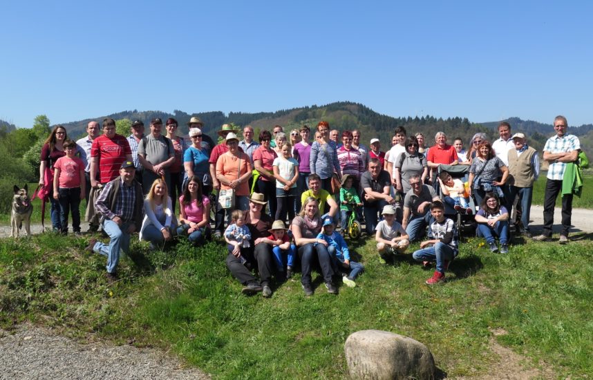 Die große Gruppe mit 55 Wanderern zog von Biberach über den Kinzigdamm Richtung Fröschbach, vorbei an der Erdbeerplantage der Familie Schmieder zurück in Richtung Biberach. An der Luisenhütte beim Kletterpark konnten die Kinder und Jugendlichen unterwegs ihren Osterhasen jagen.