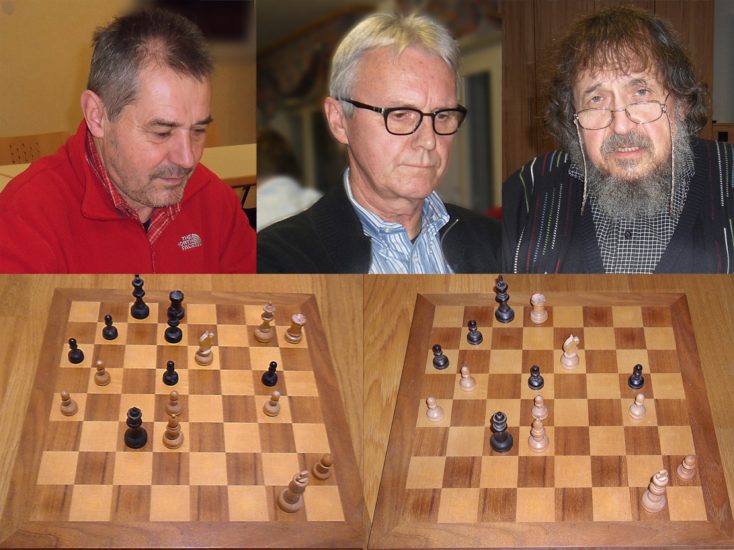 Gut in Form zeigte sich die zweite Mannschaft beim schweren Spiel gegen eine starke junge Appenweierer Mannschaft. Hans Burger (6) blies als erster im frühen Mittelspiel zur Attacke, musste sich aber letztlich mit Remis begnügen. Kurz darauf der erste Sieg für Zell durch Wolfgang Niederberger (8), welcher gegnerische Ungenauigkeiten nutzte. Als wenig später Juan Garcia (4) in starken gegnerischen Angriff geriet und verlor, war das Punktekonto der Mannschaften wieder ausgeglichen und der Kampf völlig offen, zumal Heinrich Kotzott (3) materiell im Nachteil war, dies jedoch positionell ausgleichen konnte. Mannschaftsführer Peter Baumann sah sich zu diesem Zeitpunkt genötigt, seinen Mitspielern zu empfehlen, angebotene Remisangebote vorerst noch abzulehnen. Aktivposten auf Zeller Seite waren zu diesem Zeitpunkt die Partien von Thomas Groh (2) und Peter Baumann (5). Grohs Gegner spielte ein Gambit und steckte nicht nur einen Bauern ins Geschäft, ohne jedoch entsprechende Erträge erzielen zu können. Groh verteidigte ruhig und aktiv, um zuletzt selbst erfolgreich die gegnerische Stellung zu attackieren. Beim Stande von 1,5:2,5 remisierten dann Felix Fernandez (1) und Heinrich Kotzott. Sie brachten Zell mit 2,5:3,5 in Führung und dem Mannschaftserfolg näher. Die Entscheidung fiel dann an Brett 5, an welchem Baumann mit Weiß eine von ihm noch nicht gespielte Eröffnung gewählt hatte und ihm damit wie erhofft ein starker Angriff gelang. Er drang mit Turm und Dame in die gegnerische Festung ein und trieb den König aus der Burg, um diesen quer übers Schlachtfeld zu jagen. Mit einem Damenopfer und der anschliessenden Gefangennahme des Königs durch Springer und Turm bot Baumann den zahlreichen Kiebitzen ein spektakuläres Ende der Partie. 2,5:4,5 – und nur noch eine Partie lief. Inzwischen stand Robert Eble (7), der schon ein Remis abgelehnt hatte, auf Verlust. Doch sein Gegner griff daneben und Eble siegte ebenfalls. Nach dem zweiten Sieg in Folge belegt die Mannschaft den dritten Platz im Bezirk. Die nächsten vier schweren Spiele werden zeigen, wohin der Weg geht.