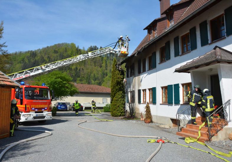 Der Feuerwehr Zell, die mit insgesamt sieben Fahrzeugen im Einsatz war, gelang es, ein weiteres Ausbreiten der Flammen auf das Wohngebäude zu verhindern. Gesamtkommandant Florian Lehmann und Einsatzleiter Philipp Schilli koordinierten den Einsatz. Von der Drehleiter aus konnten die Feuerwehrleute Teile der Dachziegel entfernen. Mit der Wärmebildkamera wurde das Dach nach möglichen Brandherden untersucht. Auch Atemschutzträger waren im Einsatz. Der entstandene Rauch wurde mit dem Entlüfter aus dem Gebäude gedrückt.