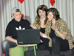 Das Programm eröffneten die Lohgass-Kinder mit einem farbenfrohen Tanz auf Party-Musik. Nach lautem Beifall gab es natürlich eine Zugabe für die Kids. Anschließend kamen Katja und Robina auf die Bühne und drehten ihr Youtube-Video »Katja und Robina erklären die Welt«. »Ich schwör« war der Spruch der zwei »Teenies« und beide erklärten auf ihre ganz eigene Art wichtige Themen wie Feminismus und Donald Trump. »Ach! Der Mann mit dem Toupet«, erinnerte sich Robina. Sie machten sich mit ihren Gags über die heutigen Teenager lustig und berichten über zwei neue Influencer aus Zell »Ahhaaaaa« Mika und Jasmin. Das Geschwister-Duo startete eine Flachwitz-Challenge und versuchte sich gegenseitig zum Lachen zu bringen. Bei »Was sagt der große Stift zum kleinen Stift? Wachsmalstift!« mussten beide aber doch grinsen.