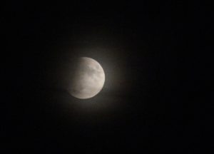 Oh Schreck, der Mond ist weg! So war es am Dienstagabend dieser Woche – aber nur für ein paar Stunden, als sich der Mond wegen einer partiellen Mondfinsternis »angeknabbert« und ziemlich dunkel am Himmel präsentierte.