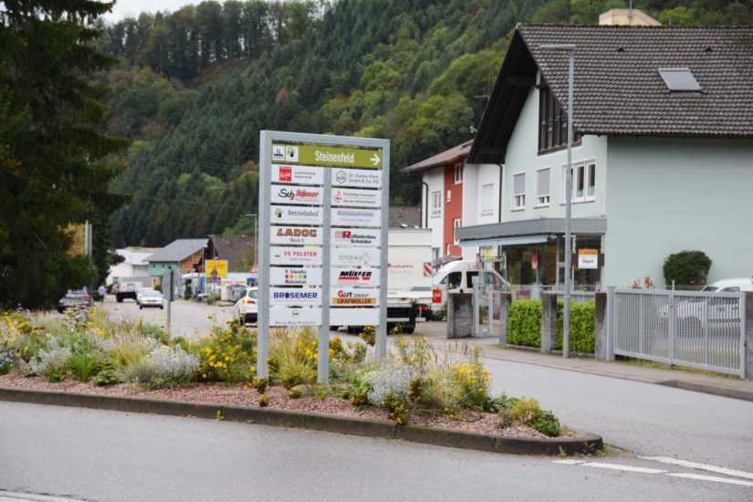 »Es war der Wunsch mehrerer Firmen, den Wildwuchs von Schildern entlang der Straße zu ordnen«, berichtete Leiterin Maria Hättich vom Stadtmarketing. Die Stadt Zell nahm sich der Aufgabe an und setzte sich mit den 55 Firmen im Gewerbegebiet Steinenfeld in Verbindung. 30 haben mitgemacht. Ihre Firmenlogos befinden sich nun auf den insgesamt drei großen Infotafeln, die an den Abzweigungen in die Straßen Steinenfeld, Hausmatt und Galgenfeld aufgestellt wurden.