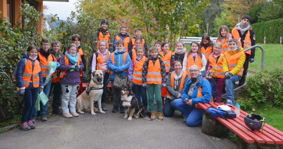 Am Donnerstag machten sich 26 Schülerinnen und Schüler der Klassen W5a und W5b auf den Weg Richtung Unterharmersbach. Begleitet wurden sie bei ihrer Putzaktion von ihren beiden Klassenlehrerinnen Mirjam Lehmann und Elke Reinisch sowie von Eltern. Auch die beiden Schulhunde Kaya und Jervi gingen mit auf Tour.