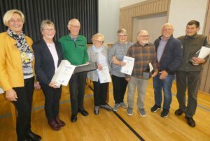 Mitglied im TV Zell ist Ulrich Saade seit 50 Jahren. 1995 übernahm er als Übungsleiter und Organisator die Männerriege „Die Montagsturner“, stattete sie mit enormer inhaltlicher Bandbreite aus. Im Laufe der seither vergangenen 28 Jahre habe die Gesellschaft sich verändert, sei vielfältiger, unruhiger, schnelllebiger, einsamer, anspruchsvoller und empfindlicher geworden, so die Vorsitzende. „Umso mehr braucht es Menschen wie Dich, Uli, die es schaffen, 28 Jahre lang eine Turngruppe zu leiten und zu lenken.“ Wozu auch die Geselligkeit gehöre, sprich das Miteinander das ganze Jahr über zu leben, beispielsweise durch Ausflüge und Nikolausfeier