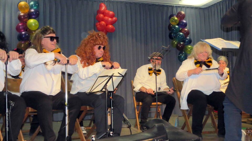Die letzte Nummer wurde von Melissa Bruder humorvoll angekündigt: Hummeln sind doch übergewichtig und kurzsichtig – das merkt man den Hummeln gleich gar nicht an. Das Hummelorchester kam sehr disziplinlos auf die Bühne getrampelt und versuchte erstmal ohne Dirigenten, zu der Musik zu performen. Doch das klappte nicht. Erst mit dem Auftritt des Dirigenten kam etwas Ordnung in die Gruppe und sie quietschten auf offensichtlich sehr alten Luftpumpen zur Melodie der Trisch-Trasch-Polka. Ein witziger Auftritt, der die Akteure oft selber zum Lachen brachte – Chaos kann auch lustig sein.