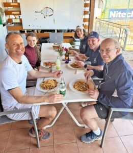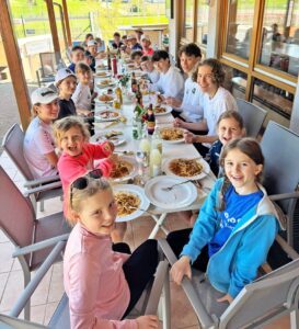 Mittags wurde im Clubheim für alle Teilnehmer und Trainer ein gemeinsames Mittagessen zubereitet. Für die Pausen gab es ein üppiges Obst- und Kuchenbuffet, und bei den sommerlichen Temperaturen war auch eine erfrischende Eispause ein Muss. Die Stimmung auf dem Platz war durchweg hervorragend, alle waren motiviert und voller Energie. Nach dem offiziellen Training hatten viele Kinder noch immer nicht genug und spielten weiter, bis die Dunkelheit hereinbrach – und der Grillmeister zum Abendessen rief.