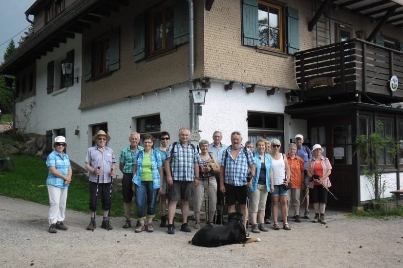 Hier, oberhalb des Kirnbachtals, werden schon seit vielen Jahren Gäste verköstigt und beherbergt, früher in Eigenregie von den Naturfreunden Schramberg, heute von einer munteren Pächterfamilie. Auch die Entersbacher Wanderer genossen auf der neu angelegten Terrasse die gute Verpflegung bei schöner Aussicht und einem erfrischenden Lüftchen.