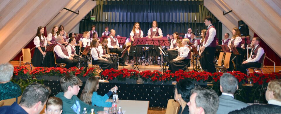 Gleich elf Musikerinnen und Musiker konnten im Rah- men des Nikolauskonzerts im Dorf gemeinschaftshaus in den Vordergrund gestellt werden.
