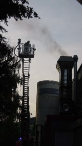 Foto: Hans-Peter WagnerNach bisherigen Erkenntnissen führte wohl die Verpuffung in der Luft befindlicher Gase am Sonntagabend zu dem Brand, der sich auf die Abzugsanlage ausbreitete. Über dem Firmengelände war eine schwarze Rauchwolke weithin sichtbar. Da Löschversuche der umsichtig handelnden Mitarbeiter nicht erfolgreich waren, wurde die Feuerwehr hinzugerufen und der Bereich abgesichert. Die Hilfskräfte von Feuerwehr, DRK, THW und Polizei rückten mit 15 Einsatzfahrzeugen und ca. 80 Einsatzkräften aus.