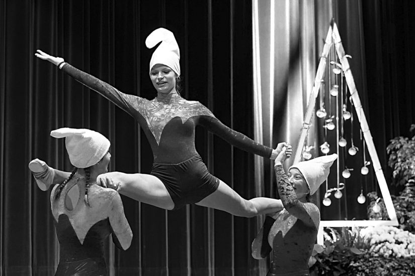 Hohes turnerisches Können erforderte die Spaßnummer der sieben Zwerge am Barren.