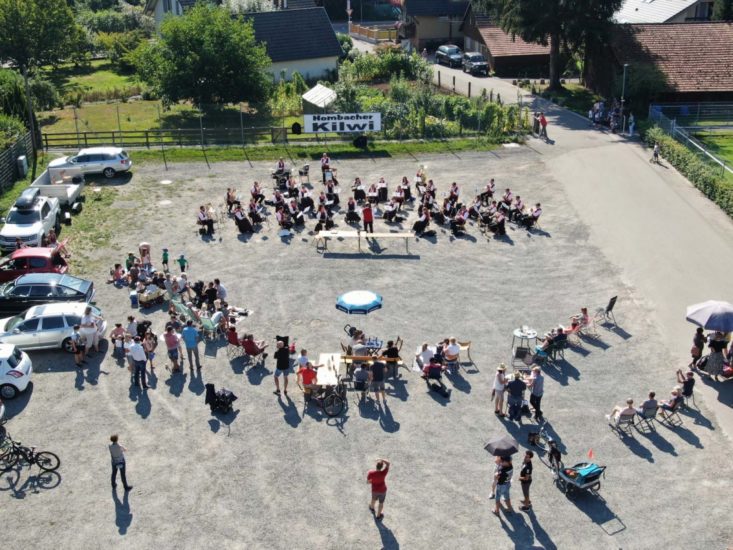 Hombacher Kilwi anno 2020: Die Musik- und Trachtenkapelle Unterharmersbacher gab genau an dem Platz, wo normalerweise das große Kilwi-Zelt steht, am Sonntagvormittag ein Pop-Up-Konzert. Foto: Verein