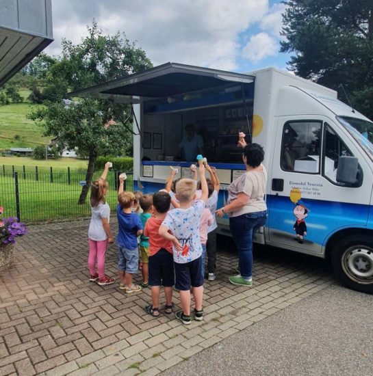 Den letzten Tag vor den Ferien durften die Kinder des Kindergartens »Kleine Wolke« mit einem leckeren Eis ausklingen lassen. Kurz vor Beginn der Sommerferien hat das Autohaus Deusch den Eiswagen organisiert und damit die Kinder in der benachbarten Grundschule Unterharmersbach überrascht. Vor wenigen Tagen gab es nun nochmals eine erfrischende Überraschung. Dieses Mal kamen die Kinder im Kindergarten »kleine Wolke« in den Genuss des Eiswagens und durften sich ein Eis schmecken lassen.