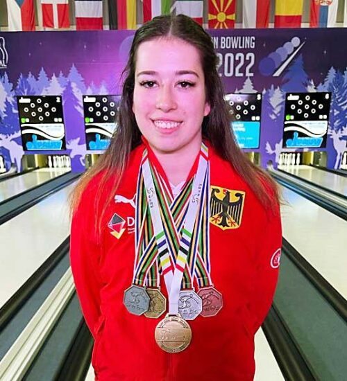 Hier setzten sie das slowakische Paar Amanda Zalar/ Sara Rovtar mächtig unter Druck und stellten mit 173 Kegel fast den Weltrekord von 174 Kegeln ein. Im zweiten Satz konterten die Sloweninnen mit 169 zu 160 Kegel und glichen zum 1:1 aus, somit musste das Sudden Victory entscheiden, jede Spielerin absolviert 2 Würfe auf das volle Bild. Hier waren beide Teams mit 28 Kegel gleich stark und erneut hieß es nach dem Bahnwechsel Sudden Victory, hier musste sich nun das deutsche Paar mit 20 zu 28 geschlagen geben.