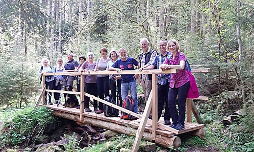 Zuerst über einen Waldweg, dann über Pfade ging es abwärts zurück in den Ort. Zwölf abwechslungsreiche Kilometer waren zurückgelegt. Dort wurde noch eingekehrt, bevor es zurück nach Unterharmersbach ging.