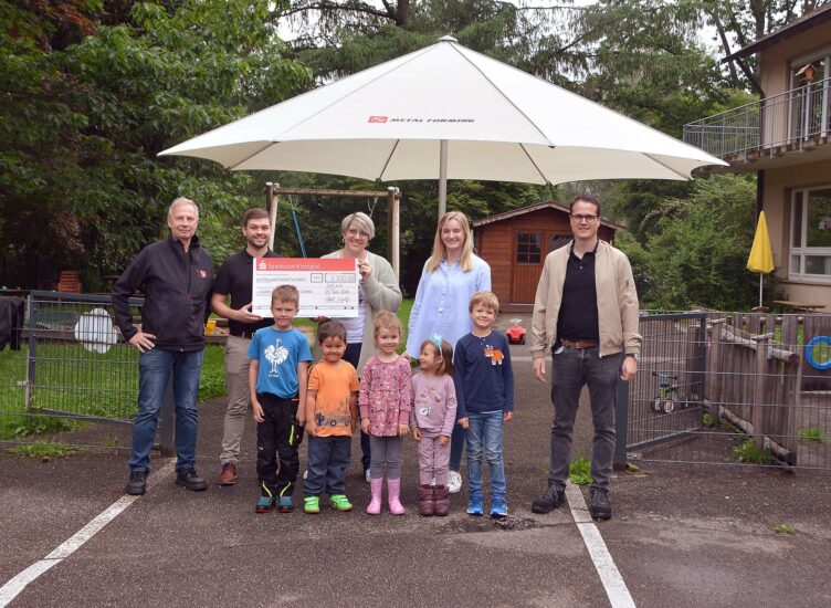 Mit dieser Spende wurde ein großer Beschattungsschirm gekauft, der vor Sonne schützt und gleichzeitig luftdurchlässig ist, so dass sich darunter keine Hitze staut. Bei der offiziellen Übergabe der Spende war die Freude bei den Kindern, aber auch der Kindergartenleitung groß.