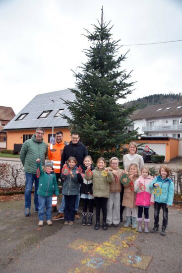 In der Oktobersitzung des Ortschaftsrats hatte Ortsvorsteher Jürgen Isenmann angeregt, zur Freude der Schüler und der Passanten den Weihnachtsbaum an diesem Ort wieder aufzustellen – so wie früher, als er hier selbst noch zur Schule gegangen ist.