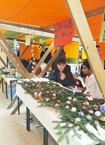 Und so freute sich die Schulgemeinschaft sehr, dass sie auch in diesem Jahr zahlreiche Gäste, darunter auch wieder viele Ehemalige begrüßen konnte. Die Besucher nutzten dabei die Gelegenheit, sich mit all den Dingen einzudecken, die eine Adventszeit so schön machen: zum Beispiel Gebäck, Linzertorten, Weihnachtsdeko oder schöne Kerzen. Natürlich trugen auch die Klassiker wie eine Tombola oder das AfriCafé dazu bei, dass sich Daniel Knäble freuen konnte.