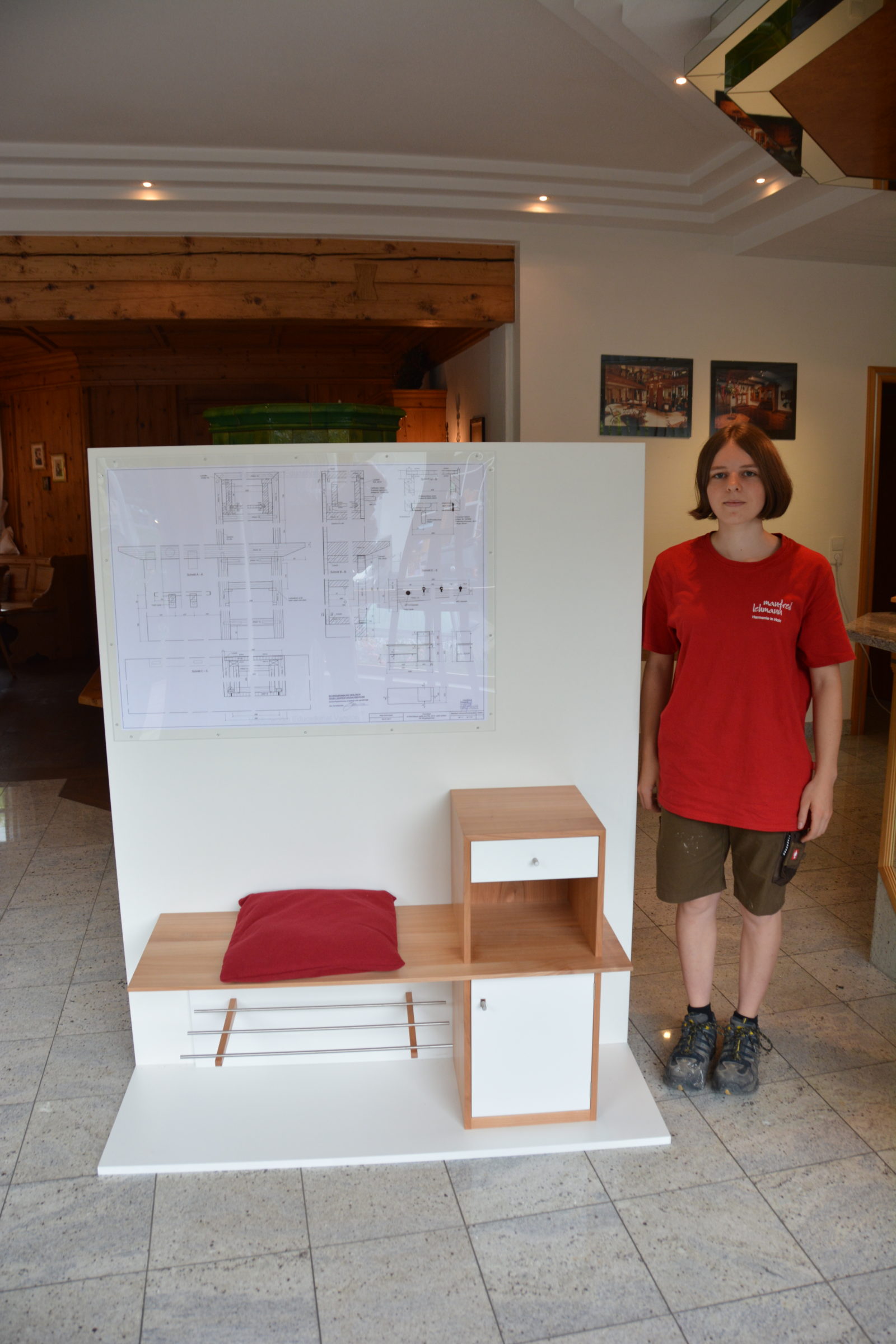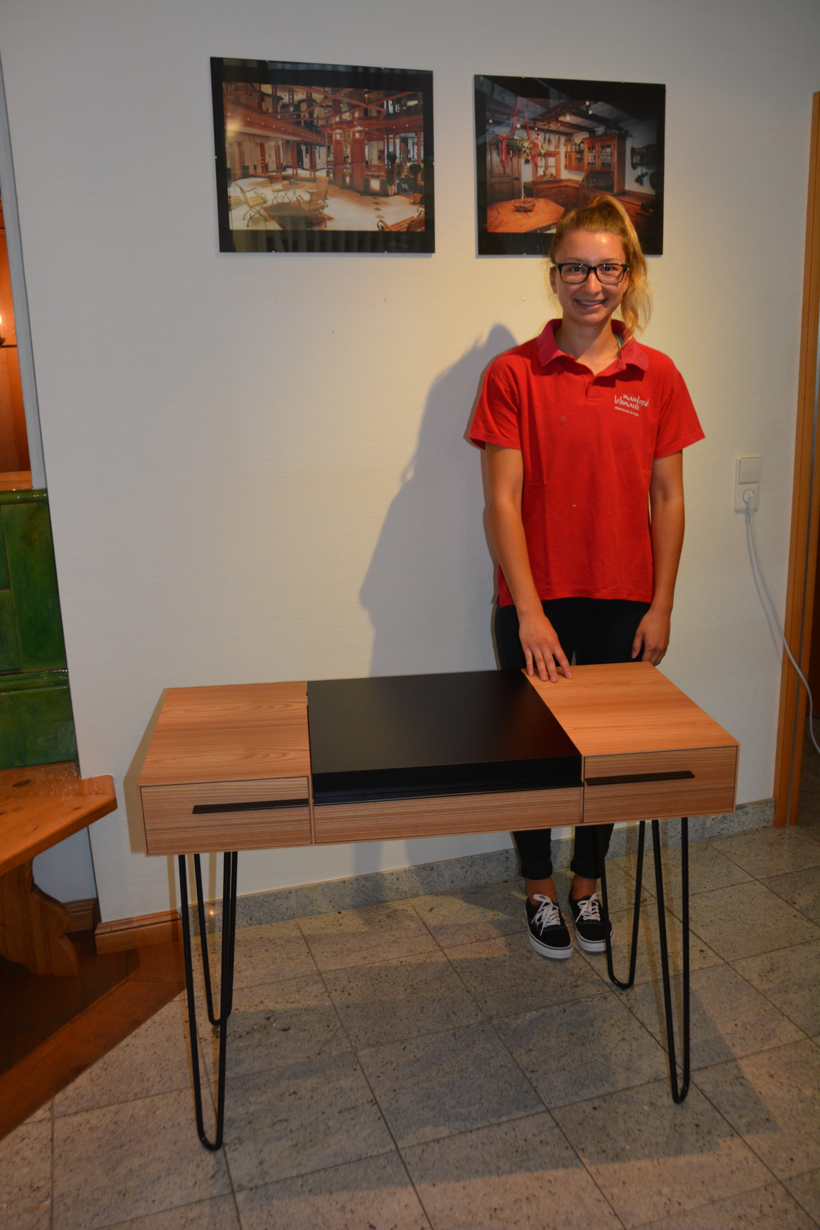 Diesen Platz beim Kammerwettbewerb in Freiburg darf nun Anja Kornmayer aus Oberharmersbach einnehmen. Sie hat mit ihrer Abschlussprüfung Platz 3 belegt und ebenfalls mit großem praktischen und theoretischen Können überzeugt. Anja Kornmayer hat als Gesellenstück ein Flurmöbel angefertigt.