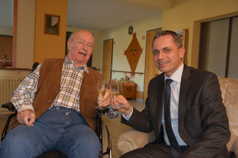 Vor eineinhalb Jahren musste Franz Pils von seinem Haus an der Hauptstraße in das Caritas-Seniorenzentrum »St. Gallus« umziehen, wo er gut betreut und auch regelmäßig von seinen Kindern mit ihren Familien besucht wird. Im Rollstuhl geht die Ausfahrt dann ins Städtle in eines der schönen Cafés, wo Franz Pils sein Zell genießen kann.