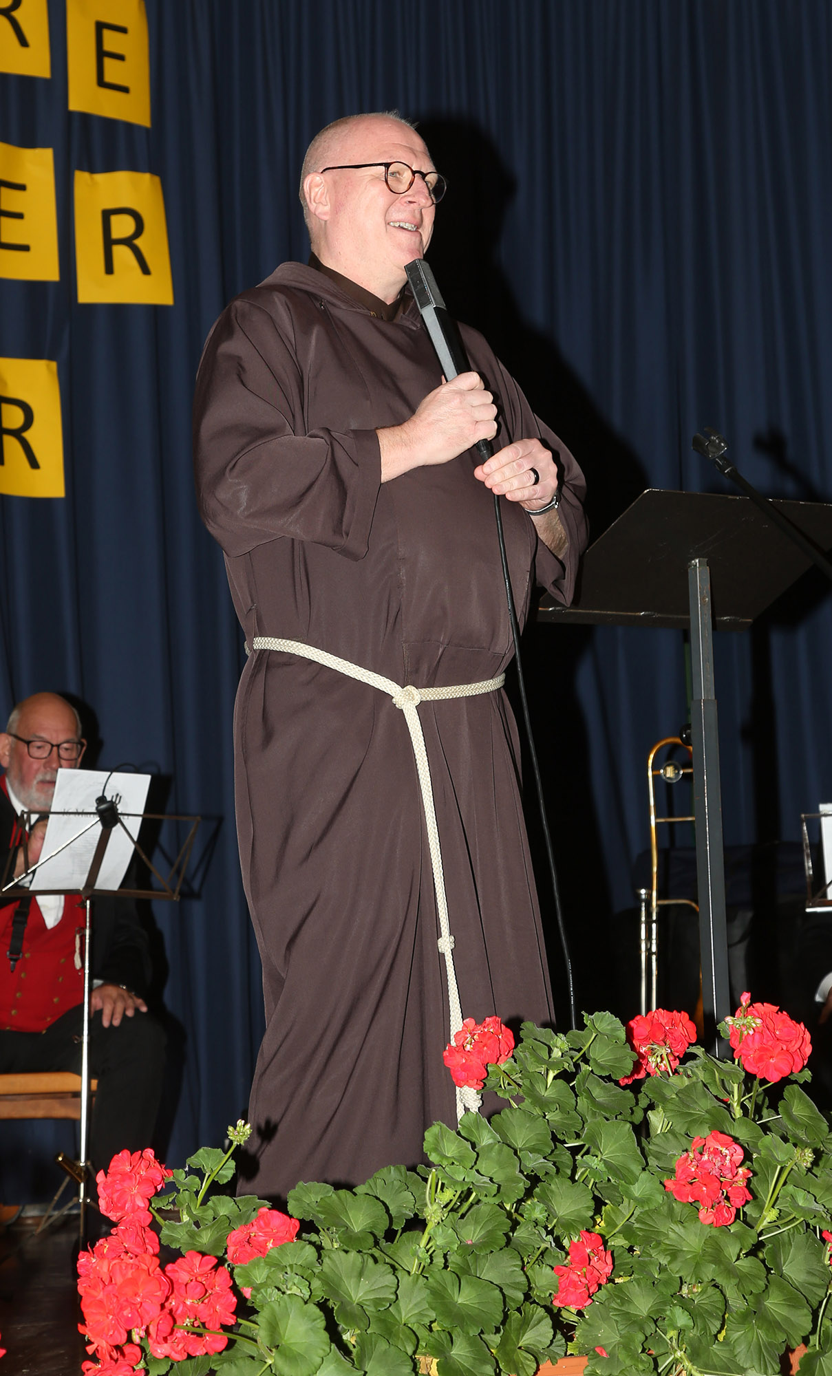 Pfarrer Bonaventura Gerner überbrachte die Glückwünsche der Seelsorgeeinheit Zell a. H. »Pfarrei und Kloster haben schon lange vielfältig zusammengearbeitet«, erinnerte er an die jahrelange Kooperation. Obwohl er momentan »franziskanerisch« mit leeren Hände dastünde, bleibe es nicht bei einem Vergelt’s Gott, sondern das Kloster erhalte für seine Arbeit anlässlich des Jubiläums eine finanzielle Zuwendung.