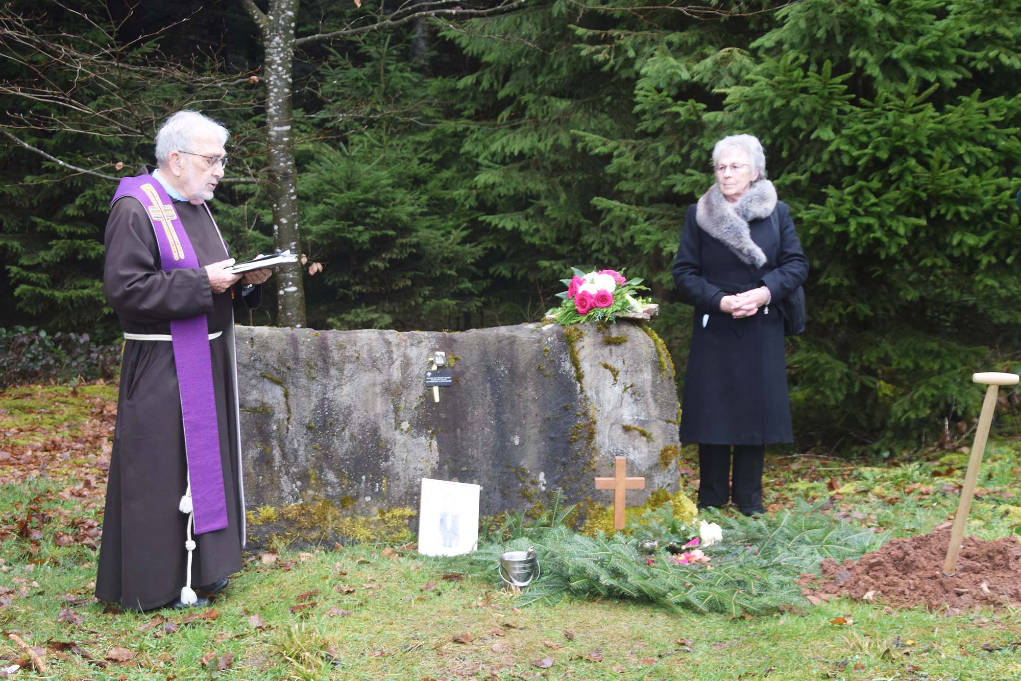 Ein guter Freund der Eheleute Keller beleuchtete noch eine andere Seite seines Lebenswegs. Schon in jungen Jahren sei es Paul Kellers Wunsch gewesen, Sportlehrer zu werden. Er habe sich im Alter von 14 Jahren in die Lehrerbildungsanstalt Bad Peterstal aufnehmen lassen und sei dann nach Colmar gekommen, wo er bei der »Germanisierung« des besetzten Elsasses mitwirken sollte. Der Kriegseinsatz in Russland habe abrupt seine Ausbildung beendet und der junge Soldat Keller sei dort in Gefangenschaft geraten. Sein fester Glaube an die Hilfen der Gottesmutter hätten ihn gestärkt und geholfen, manch kritische Grenzsituationen zu überstehen. Wieder wohlbehalten in die Heimat zurückgekehrt, habe er sich seinen Berufswunsch nicht mehr erfüllen können. Er habe aber andere Möglichkeiten gefunden, im Harmersbachtal besonders verdienstvoll wirken zu können. Paul Keller habe zusammen mit seiner Ehefrau Margarete viele Reisen unternommen, in ferne Länder, in die Bergwelt, zu den großen und kleinen Orten der Marienverehrung und den stillen Orten in der Natur. So sei es verständlich, dass er seinen letzten Ruheplatz in freier Natur gewählt habe.