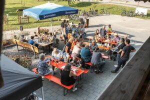Während die Gäste auf der malerischen Terrasse saßen, konnten sie bei leckerem Flammenkuchen und einem erfrischenden Honigbier das sonnige Wetter und die wunderbare Umgebung genießen. Die Kombination aus kulinarischen Köstlichkeiten und der Faszination für die Welt der Bienen machte dieses Wochenende zu einem tollen Ereignis bei Bienenmartins Imkerei.