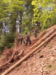Das stürmische Frühjahr ist in den Wäldern nicht ohne Schaden geblieben. Umgestürzte Bäume blockieren auch Wanderwege.